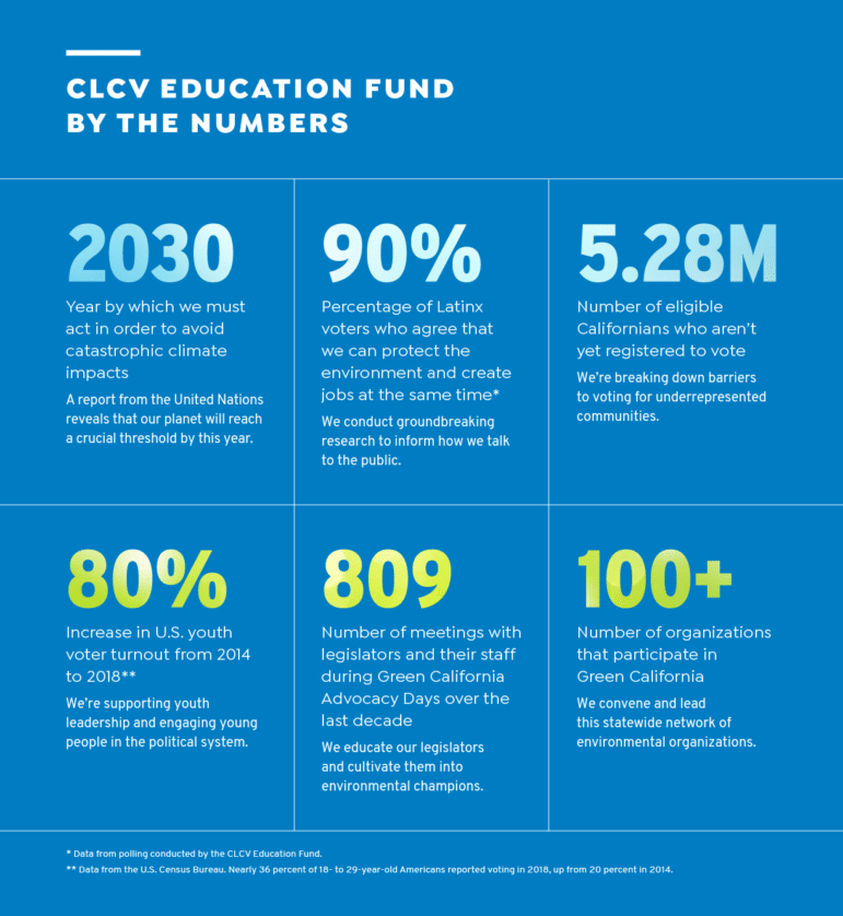 California Environmental Voters Education Fund (EnviroVoters Ed Fund), an independent 501(c)3 organization conducts public opinion research, shapes the public narrative, organizes with allies and local communities, educates legislators on the most pressing environmental issues of our day, and grows our movement and set a bold policy direction.
